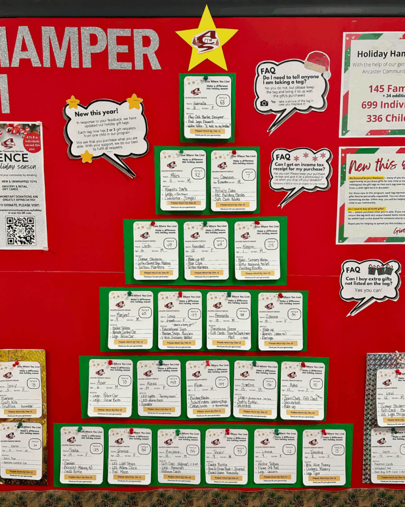 Visit our office to select an ornament tag from our Holiday Tree! New this year, each tag includes two or three special requests from a child or teenager (up to age 16) right here in Ancaster.