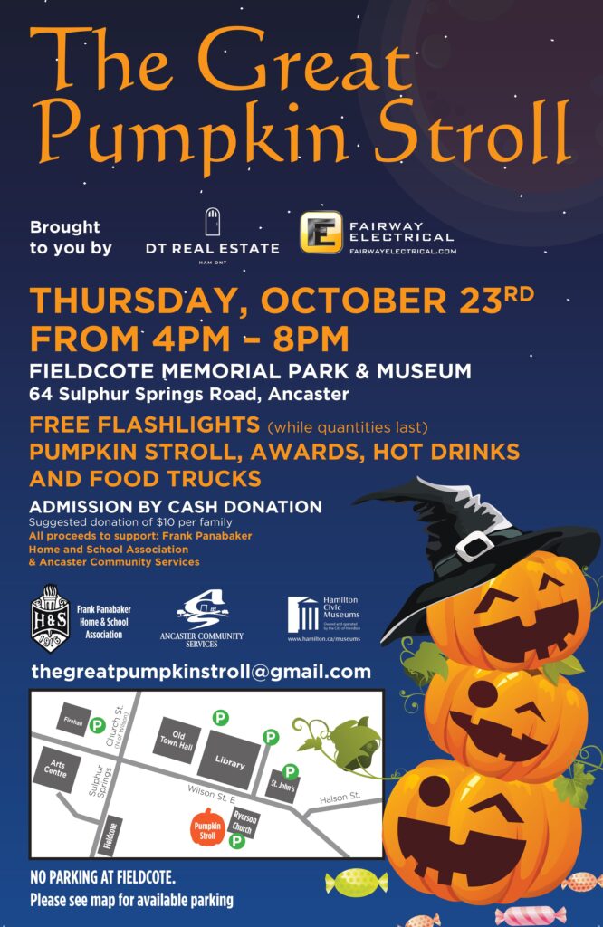 The Great Pumpkin Stroll is an annual event that brings the community together for an evening of creative, scary, and funny creations by the families and businesses of Ancaster.